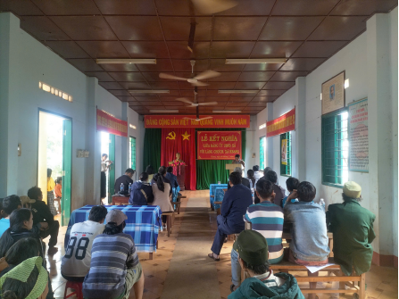 Ông Nguyễn Mạnh Cường - Bí thư Đảng uỷ UBND xã và đại diện Chi bộ, Trưởng làng Chợch ký kết bản giao ước kết nghĩa.