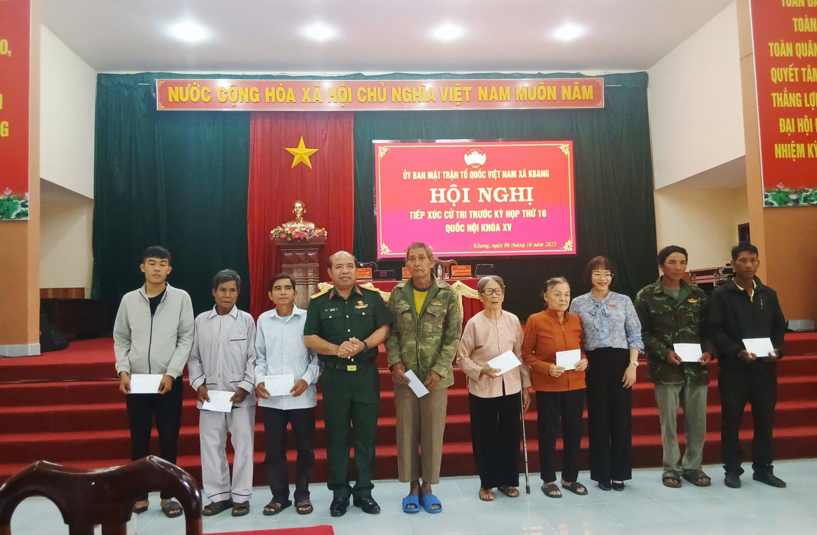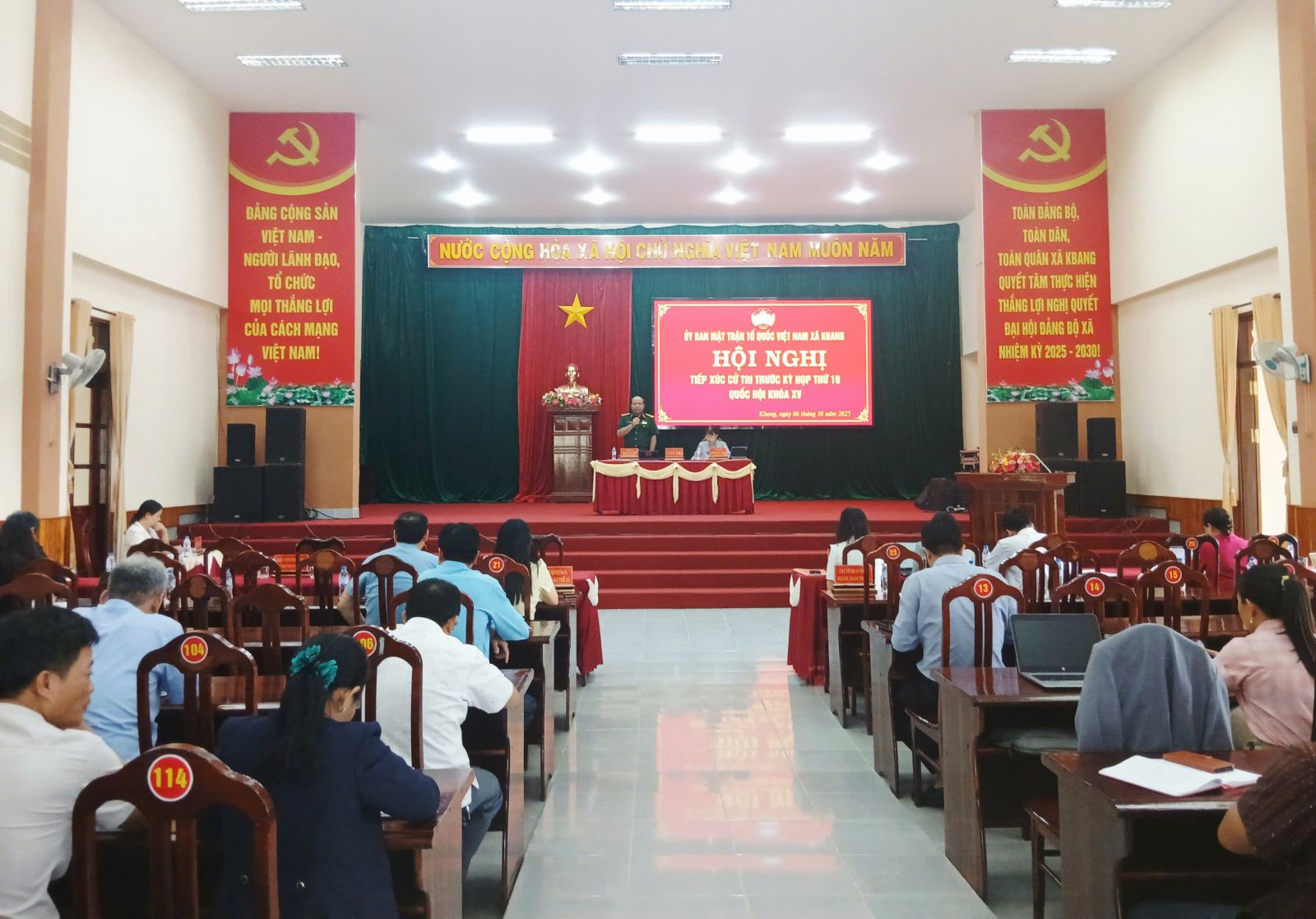 Sáng ngày 6 tháng 10 năm 2025, tại hội trường 19/5 xã Kbang. Đoàn Đại biểu Quốc hội (ĐBQH) tỉnh Gia Lai gồm: bà Nguyễn Thị Mai Phương - Phó Chủ nhiệm Ủy ban Pháp luật và Tư pháp của Quốc hội; ông Đinh Văn Thê - Phó Chỉ huy trưởng, kiêm Tham mưu trưởng Bộ Chỉ huy Quân sự tỉnh - đã có buổi tiếp xúc với cử tri xã Kbang trước Kỳ họp thứ 10 - Quốc hội khoá XV. Dự buổi tiếp xúc còn có đại diện lãnh đạo các sở, ngành của tỉnh; đại diện Thường trực Đảng uỷ - HĐND - UBND - Uỷ ban MTTQ Việt Nam xã; cùng các ngành, đoàn thể xã và đông đảo cử tri trên địa bàn.