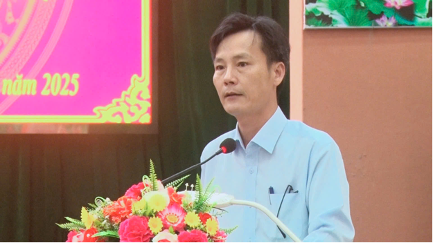 Đ/c Nguyễn Thanh Dũng - Bí thư Đảng ủy xã Kbang quán triệt các văn bản của Trung ương, phát biểu chỉ đạo tại Hội nghị
